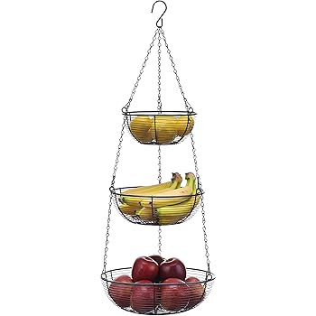 Amazon Com 3 Tier Wire Hanging Fruit Basket With Black Chain