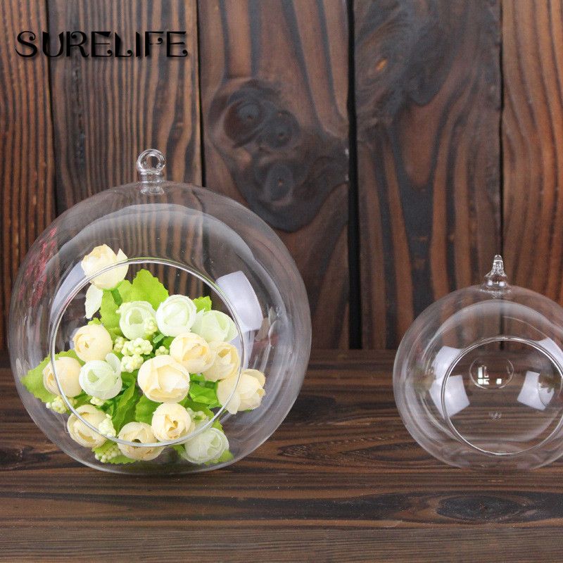 8cm Transparent Ball Globe Shape Clear Hanging Glass Vase Flower
