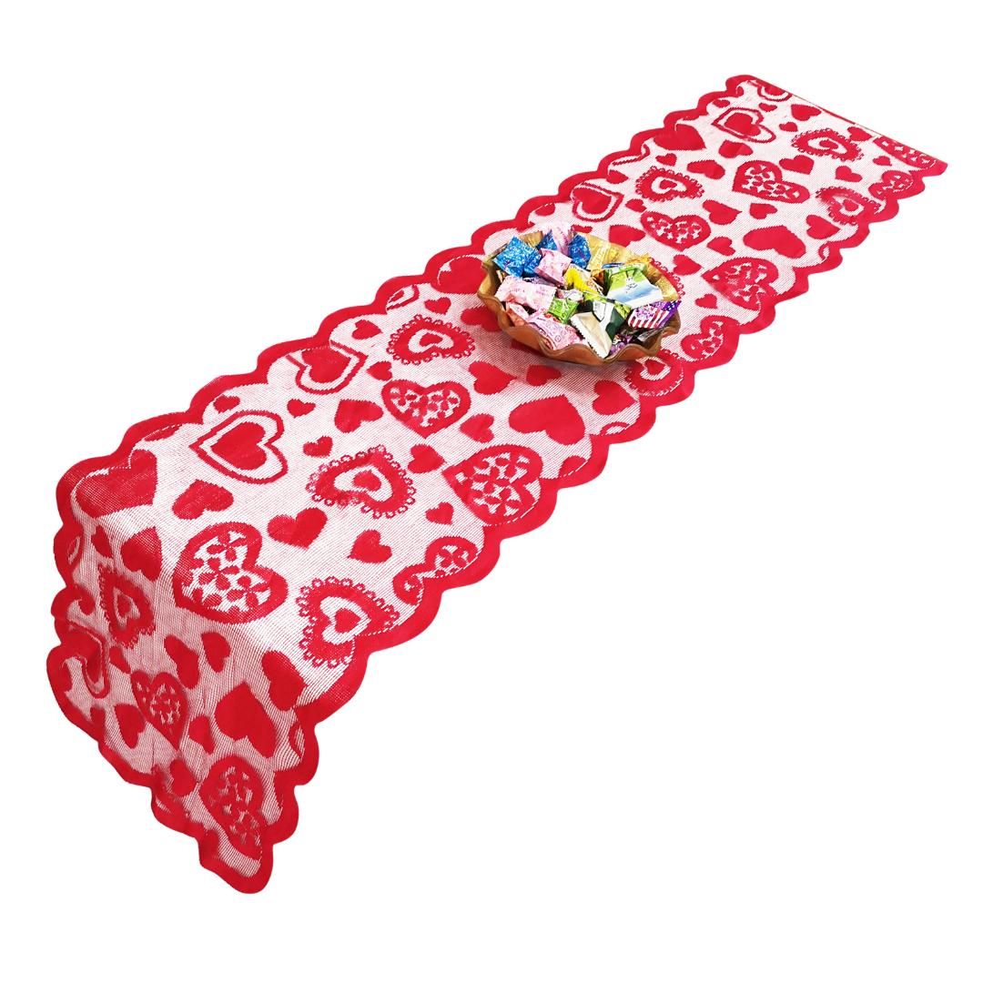 New 33x183cm Heart Pattern Lace Table Runners Valentines Day Red