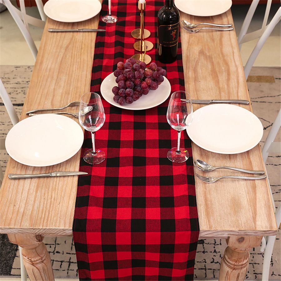 Gohope Christmas Table Runner Red Black Cotton Buffalo Check Plaid