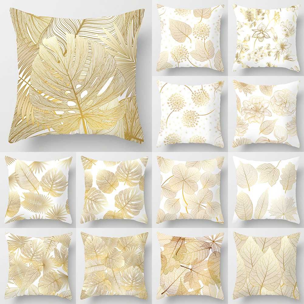 Golden Flowers Leaves Pillow Case 45 45 Polyester Home Throw