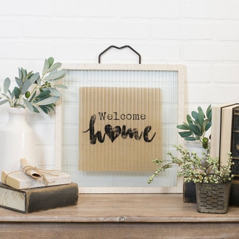 Wood And Glass Home Wall Sign Panels Off White 18 3 X 16 Vip