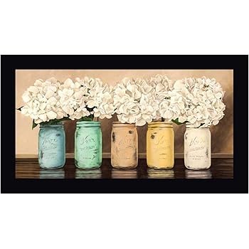 Amazon Com Hydrangeas In Mason Jars By Jenny Thomlinson Art Print