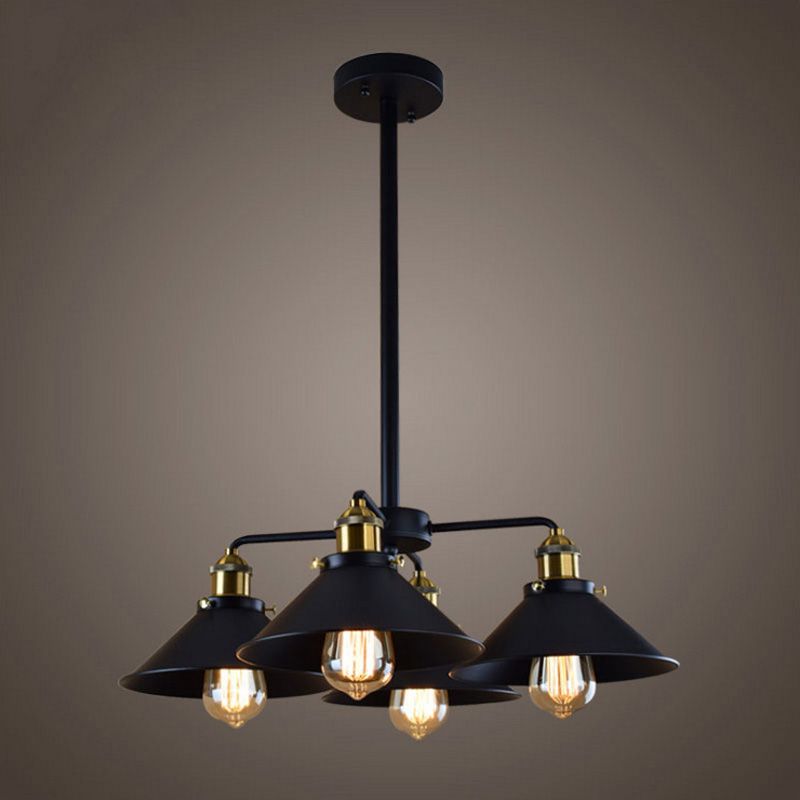 Industrial Vintage 4 Heads Black Metal Pendant Lights Suspended