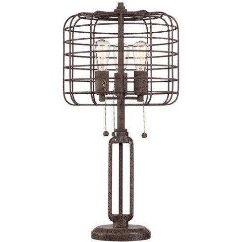 Industrial Cage Edison Bulb Rust Metal Table Lamp W6747 Lamps