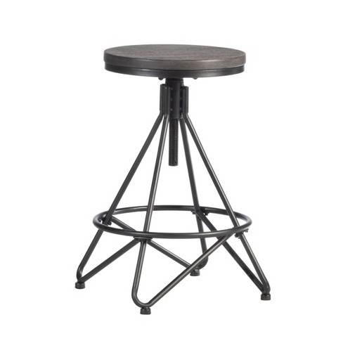 Industrial Backless Metal Swivel Adjustable Height Stool Gray