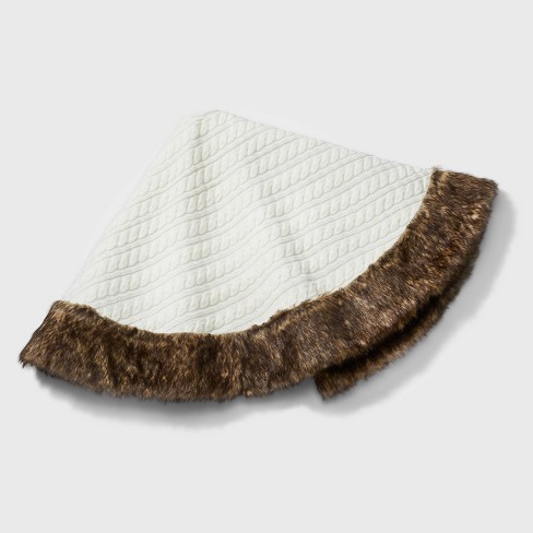 48 Faux Fur Cable Knit Christmas Tree Skirt Ivory Wondershop